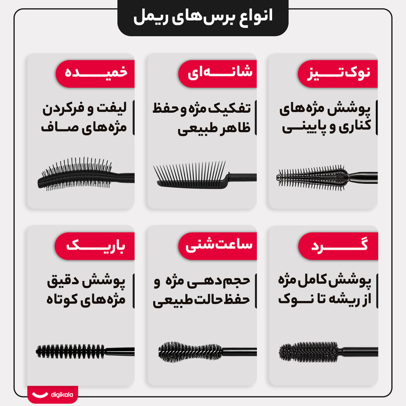 فرمول عملکرد دوگانه با بافت نرم و سبک، مژههایی حجیم و بلند خلق میکند. برس مخروطی منحصر به فرد این ریمل تکتک مژهها را پوشش داده و از چسبندگی آنها جلوگیری میکند تا جلوهای کاملاً طبیعی و خوشحالت ایجاد شود. بافت کرمی این محصول از خشک شدن تدریجی مواد و شکننده شدن مژهها جلوگیری میکند.