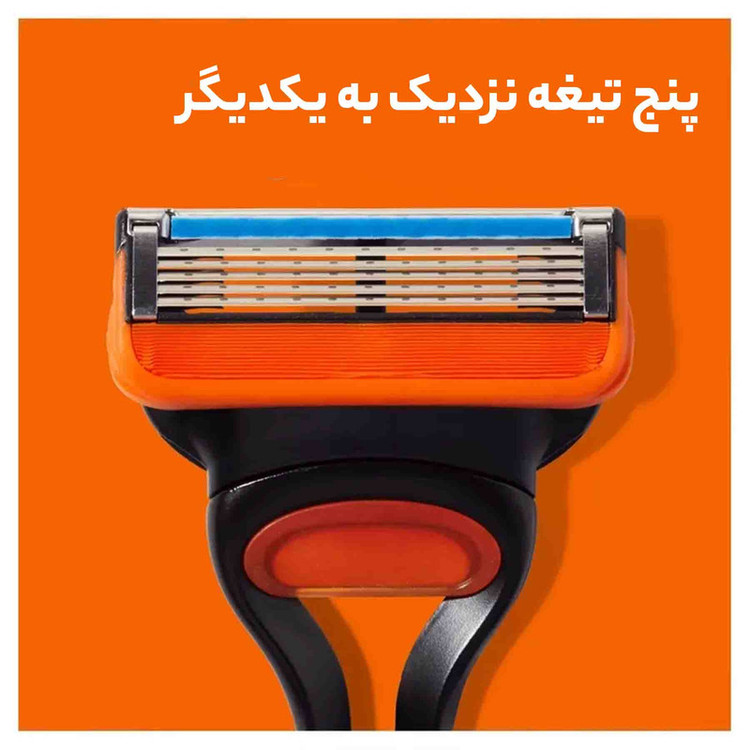 یدک ژیلت مدل Fusion5 دارای 5 تیغه از جنس استیل ضد زنگ است و در آن از جدیدترین تکنولوژی ها که به اصلاح راحتتر آقایان کمک میکند استفاده شده است. سری انعطاف پذیر این خودتراش در تمام زوایای صورت به راحتی حرکت میکند و بدلیل داشتن نوار ژلی هنگام استفاده بر روی صورت تولید مقداری کف میکند تا حرکت راحتتری بر روی صورت داشته باشد. در نوار ژلی این خودتراش ازعصاره آلوئهورا استفاده شده تا از ایجاد التهاب و حسایت جلوگیری شود.همچنین در پایین تیغ از لایه ای از میکروفین استفاده شده است که از پوست صورت محافظت می نماید. این محصول حاوی 4 عدد تیغ در یک بسته بندی است.