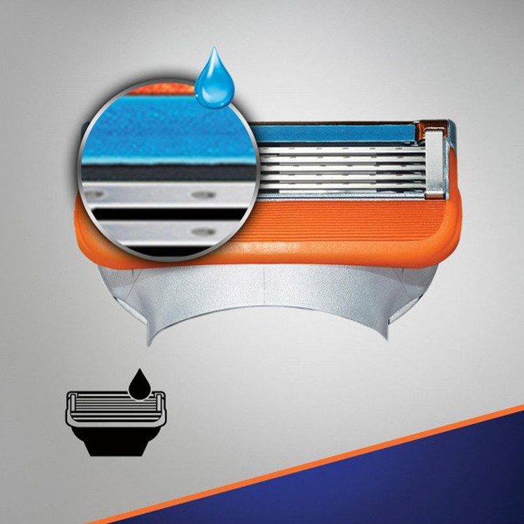 . جنس تیغهها از استیل ضدزنگ است و در برخورد با آب دچار زنگزدگی نمیشود. تیغهای یدک ژیلت برای استفادهی آقایان مناسباند. پنجعددیبودن تیغهها به اصلاحی راحت و سریع و با حداقل تماس با پوست کمک فراوانی میکند. وجود دو عدد نوار ژلی در بالا و پایین تیغهها موجب میشود هنگام خیسشدن، حالتی لیز و ژلهای پیدا کنند. این موضوع به لیزشدن سطح پوست و در نهایت حرکت سریع تیغهها روی پوست منجر میشود و در نهایت به اصلاحی روان، آسان و سریع کمک میکند. نوارهای ژلی از بریدهشدن پوست و ملتهبشدن پوست صورت جلوگیری خواهند کرد. همچنین تیغههای یدک دارای یک لبهی تیغ دقیق در پشت برای ایجاد خط هستند.
