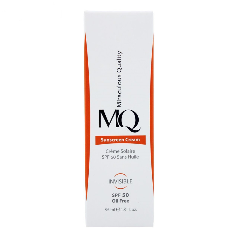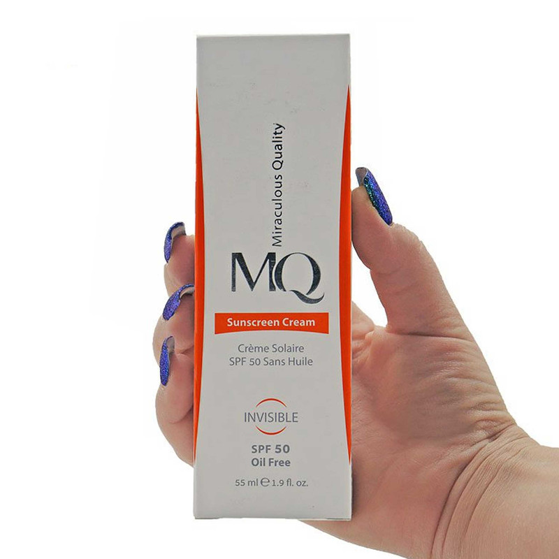 کرم ضدآفتاب بی‌رنگ ام کیو SPF50 مدل INVISIBLE، مناسب پوست‌های چرب، حجم 55 میلی‌لیتر