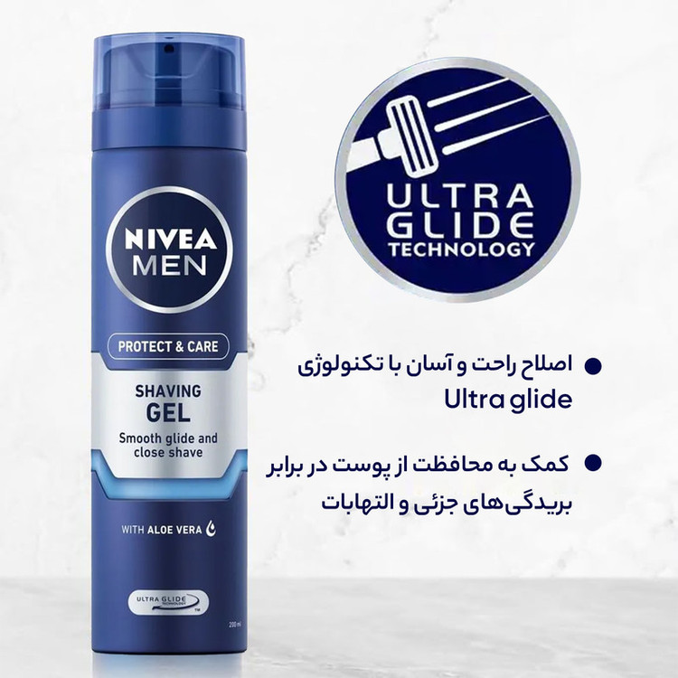 صلاح پیشرفته با تکنولوژی Ultra glide اصلاح راحت و آسان کمک به محافظت از پوست در برابر بریدگیهای جزئی و التهابات آبرسان و نرم کننده پوست و موی صورت و گردن جلوگیری از خشکی، کشیدگی و سوزش در پوست حاوی عصاره آلوئه ورا ویژه آقایان