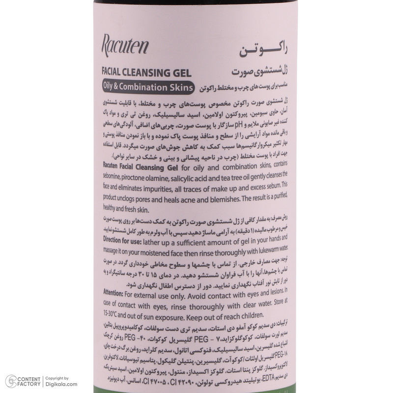 ژل شستشو صورت راکوتن مدل ph 5 مناسب پوست های چرب و مختلط حجم 200 میلی لیتر