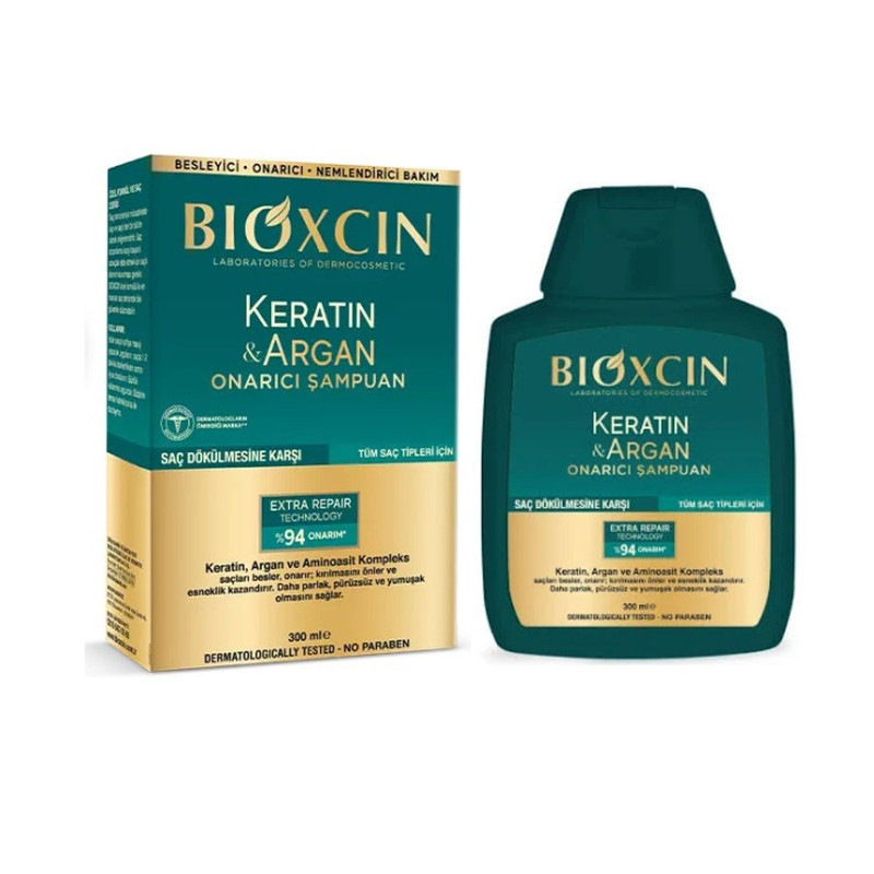 شامپو ترمیم کننده ضد ریزش bioxcin حاوی آرگان کراتین، حاوی کراتین هیدرولیز شده و روغن ارگان اصل باعث ترمیم و مرطوب شدند .